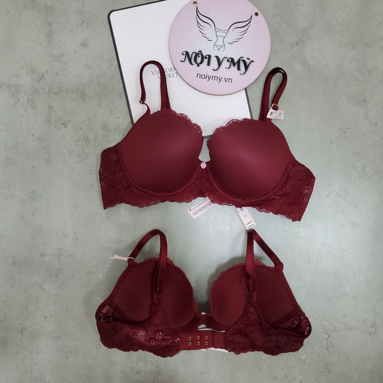 Áo lót Victoria Secret Dream Angels không nâng mút mỏng thun lạnh phối ren màu đỏ đô 27176387