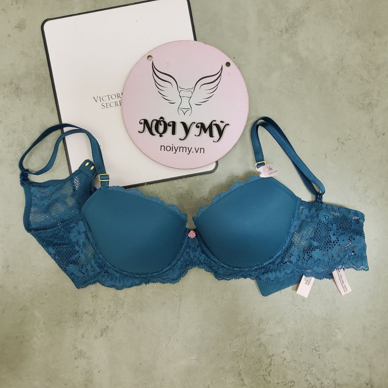 Áo lót Victoria Secret Dream Angels không nâng mút mỏng thun lạnh phối ren màu xanh lam 27176706