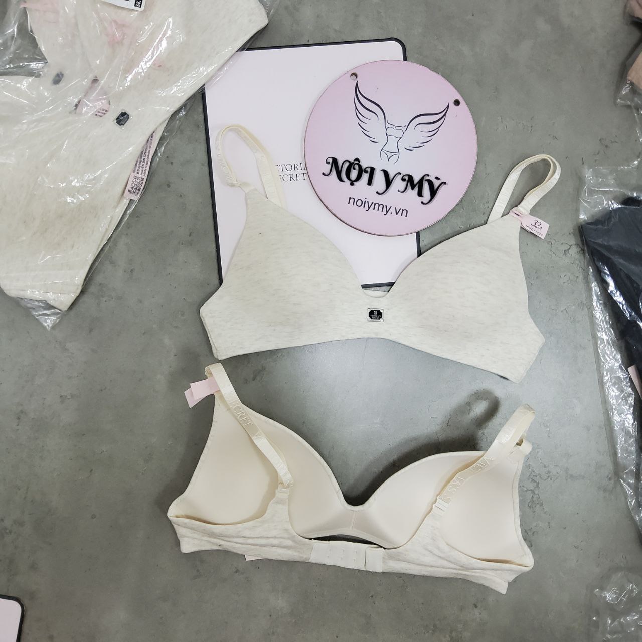 Áo lót Victoria Secret không nâng không gọng mút mỏng thun cotton màu kem vân xám 423833ser