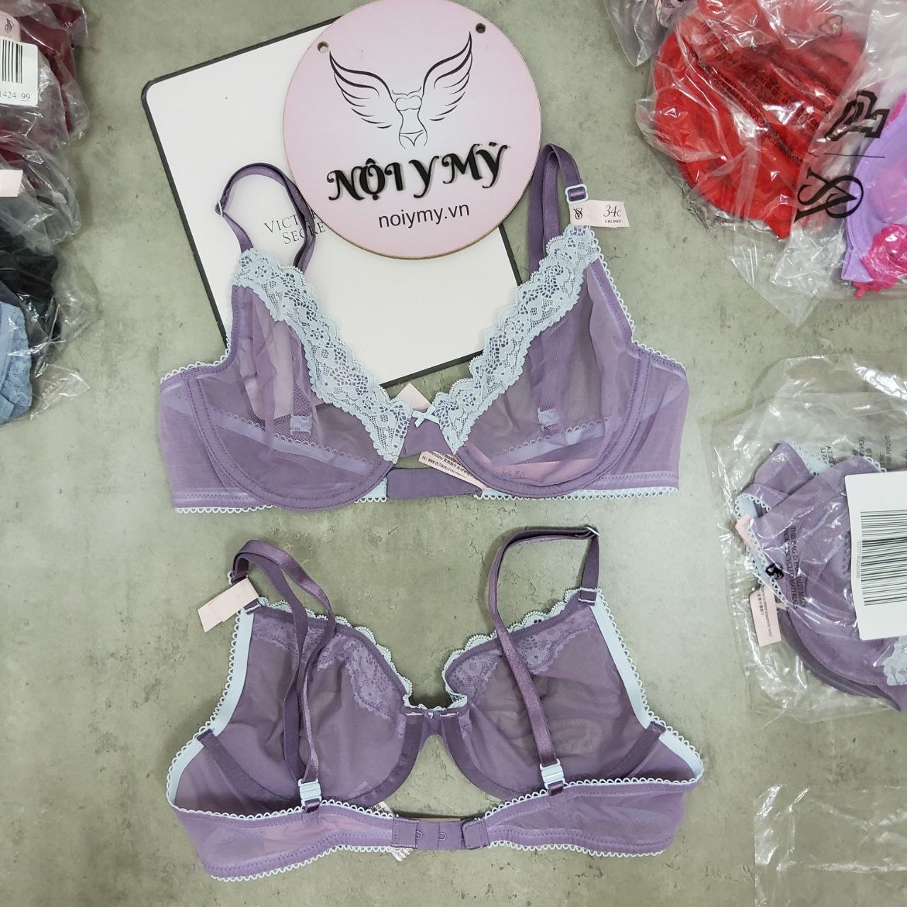 Áo lót Victoria Secret không nâng không mút ren lưới màu tím viền xanh 231719qqw