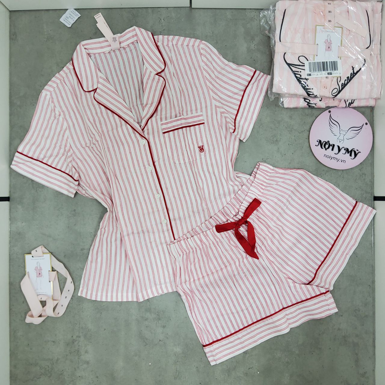 Pijama Victoria’s Secret cotton màu trắng sọc đỏ kim sa 419565spv