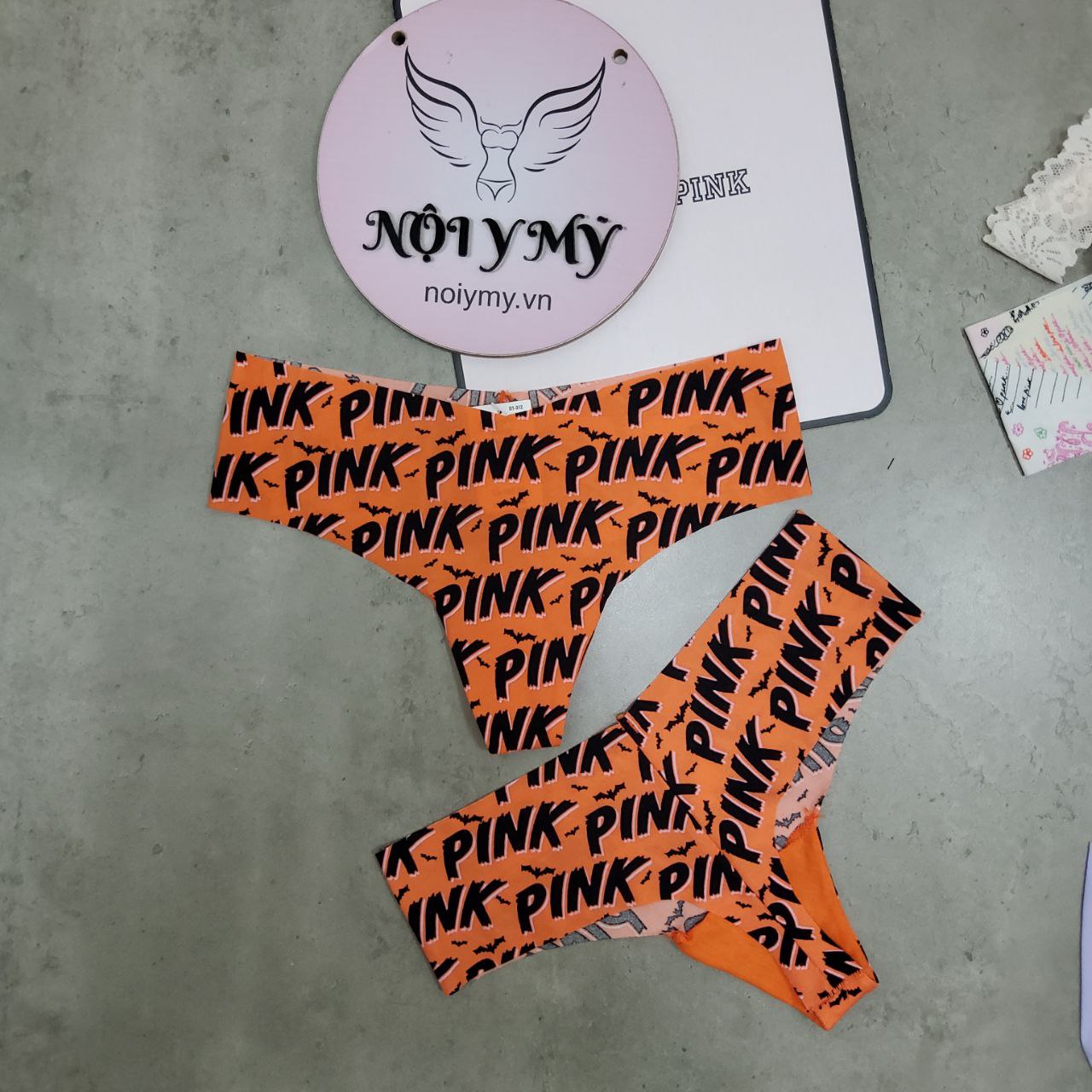 Quần lót Pink lọt khe lưng cao thun lạnh không viền màu cam hoạ tiết 27083371