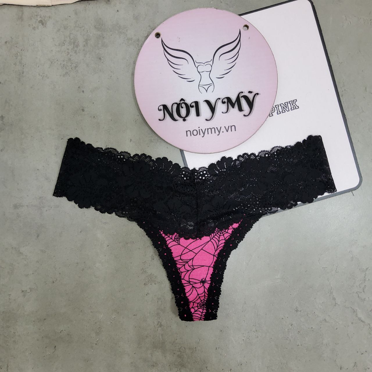 Quần lót Pink lọt khe thun cotton lưng ren đen màu hồng hoạ tiết 420461rdu