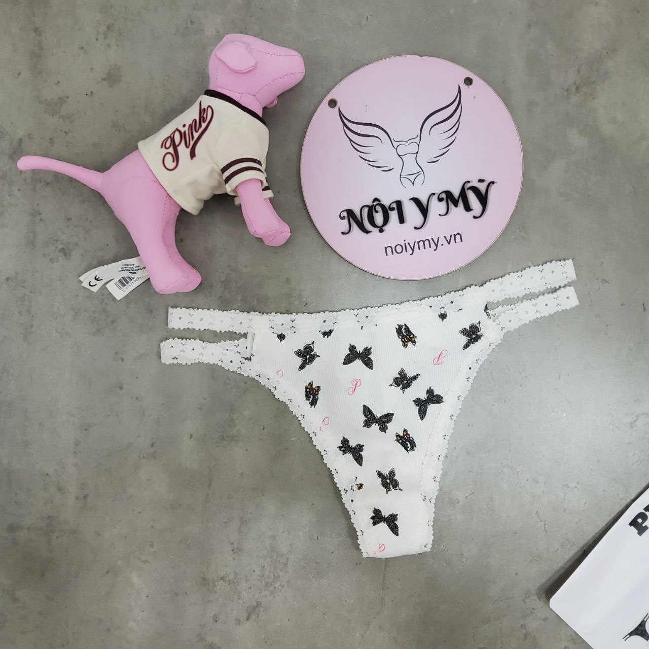 Quần lót Pink lọt khe thun cotton ren 2 hông dây màu trắng hoạ tiết 419339r4q