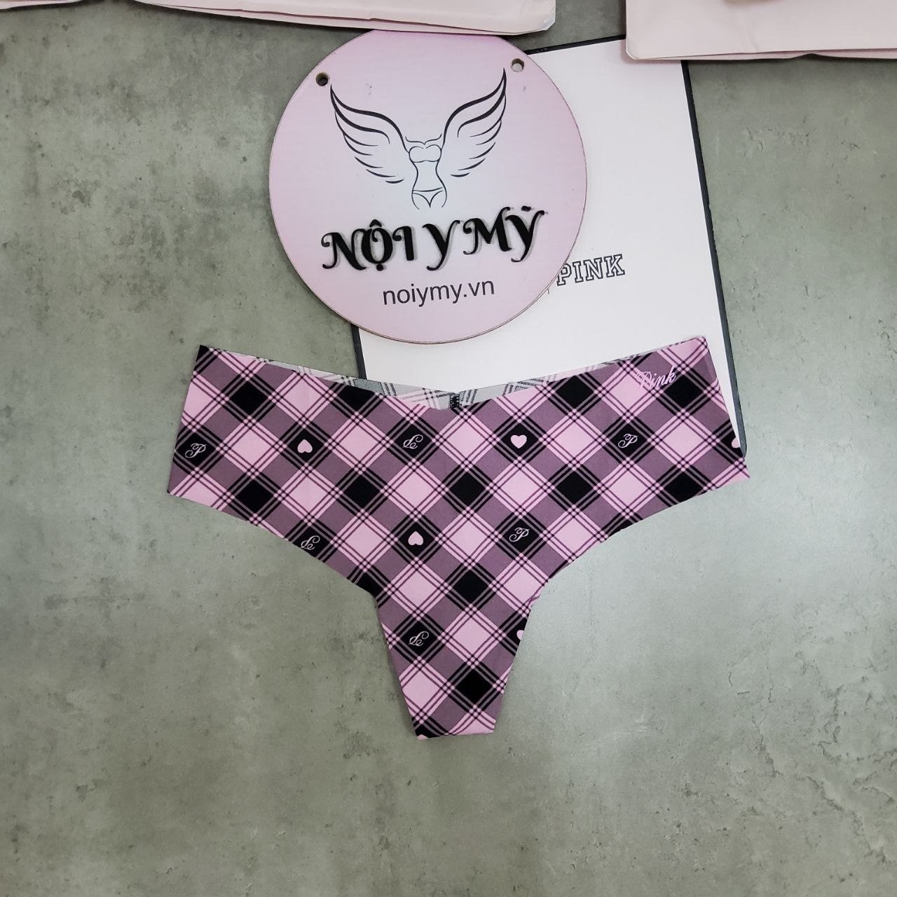Quần lót Pink lọt khe thun lạnh không viền màu caro hồng 416223