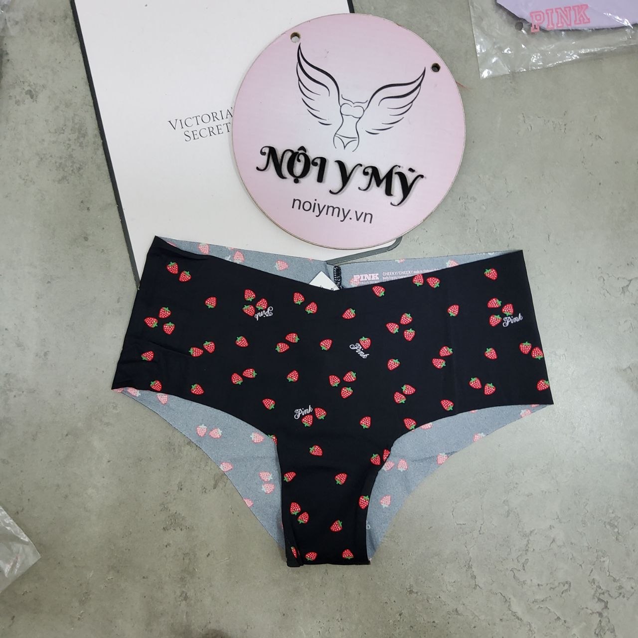 Quần lót Pink nửa mông thun lạnh không viền màu đen hoạ tiết 430797r6e