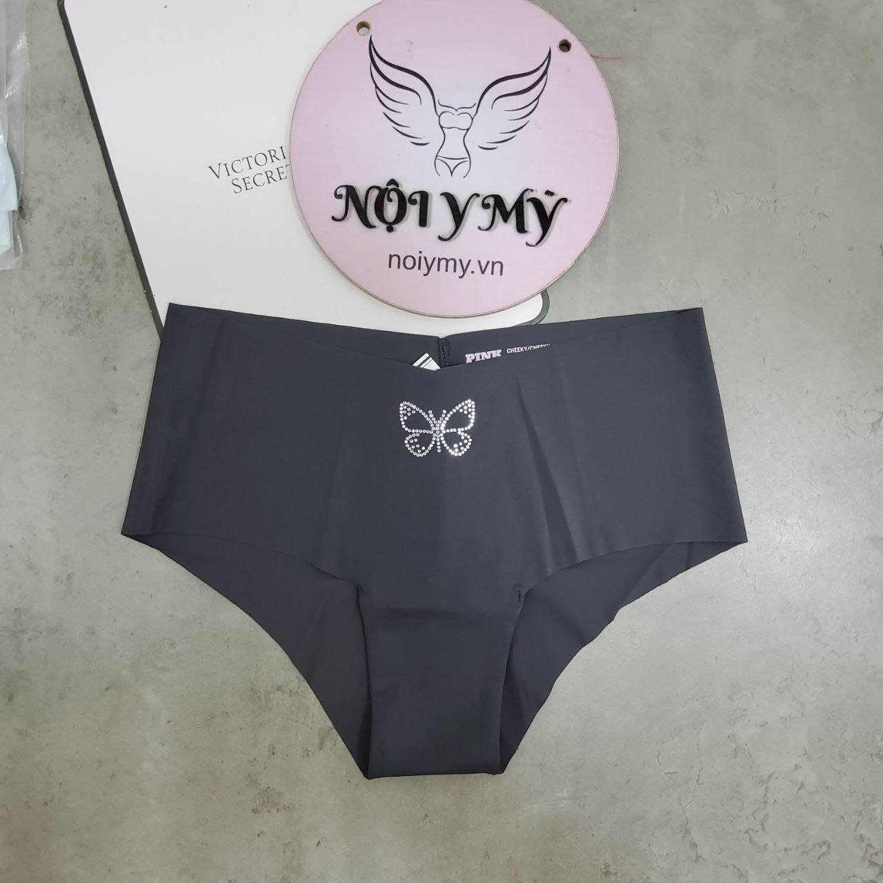 Quần lót Pink nửa mông thun lạnh không viền màu đen xám đính đá 430797qf7