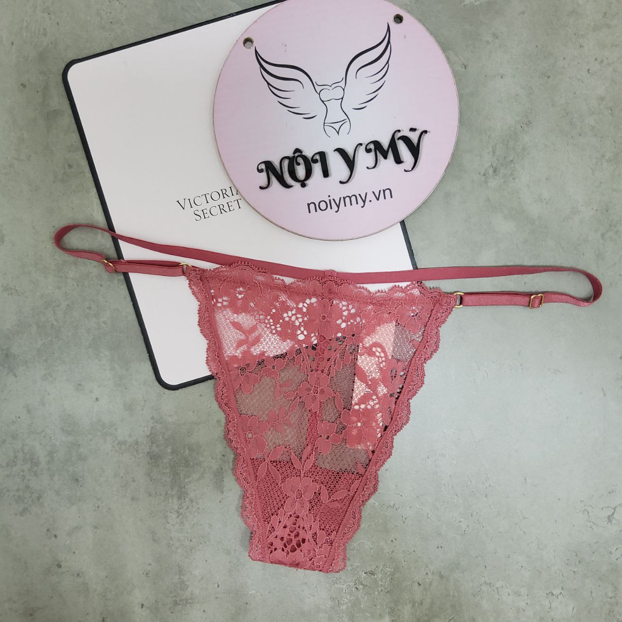 Quần lót Victoria Secret lọt khe dây điều chỉnh ren màu hồng đất 419827qky
