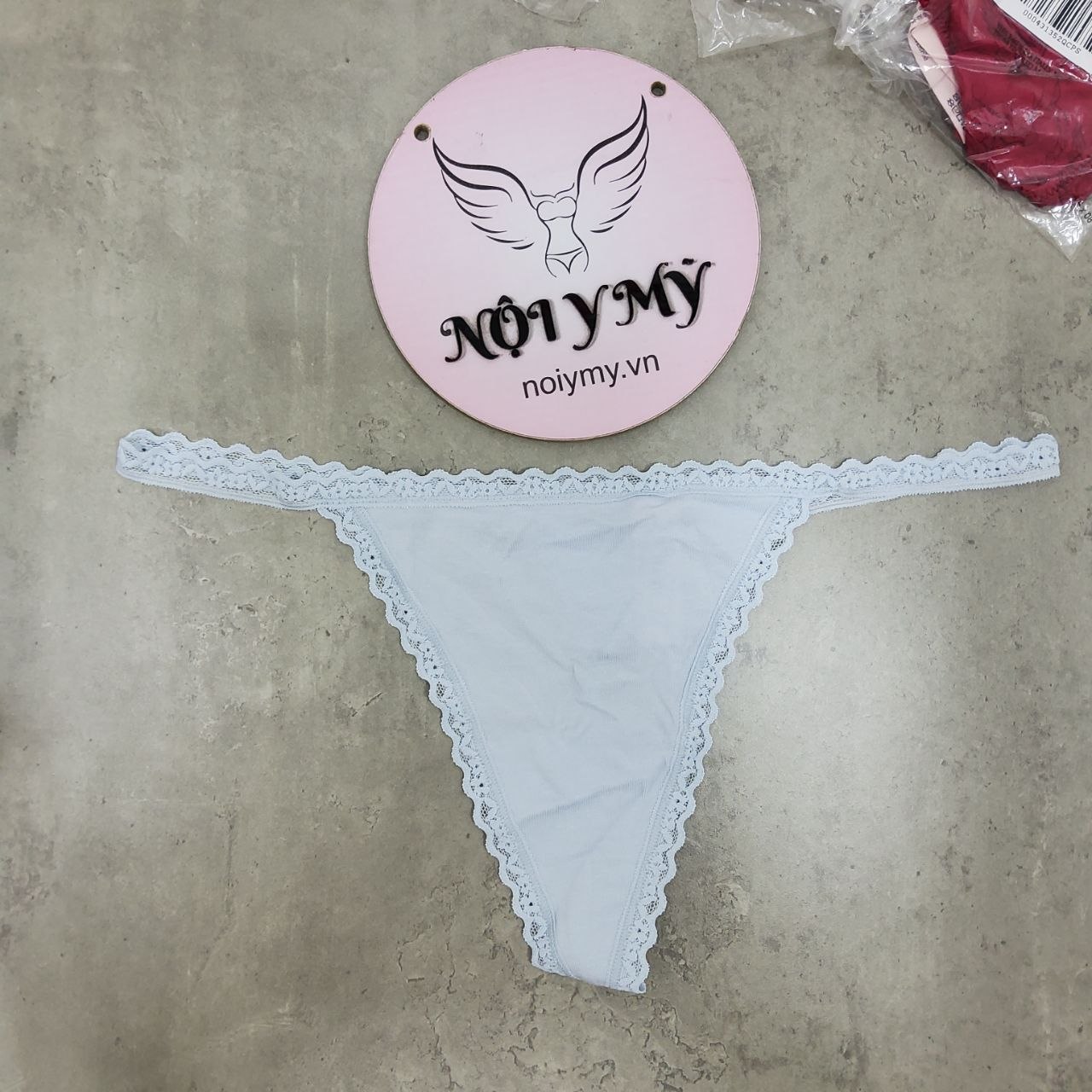 Quần lót Victoria Secret lọt khe dây thun cotton viền ren màu xanh biển nhạt 417795qg2