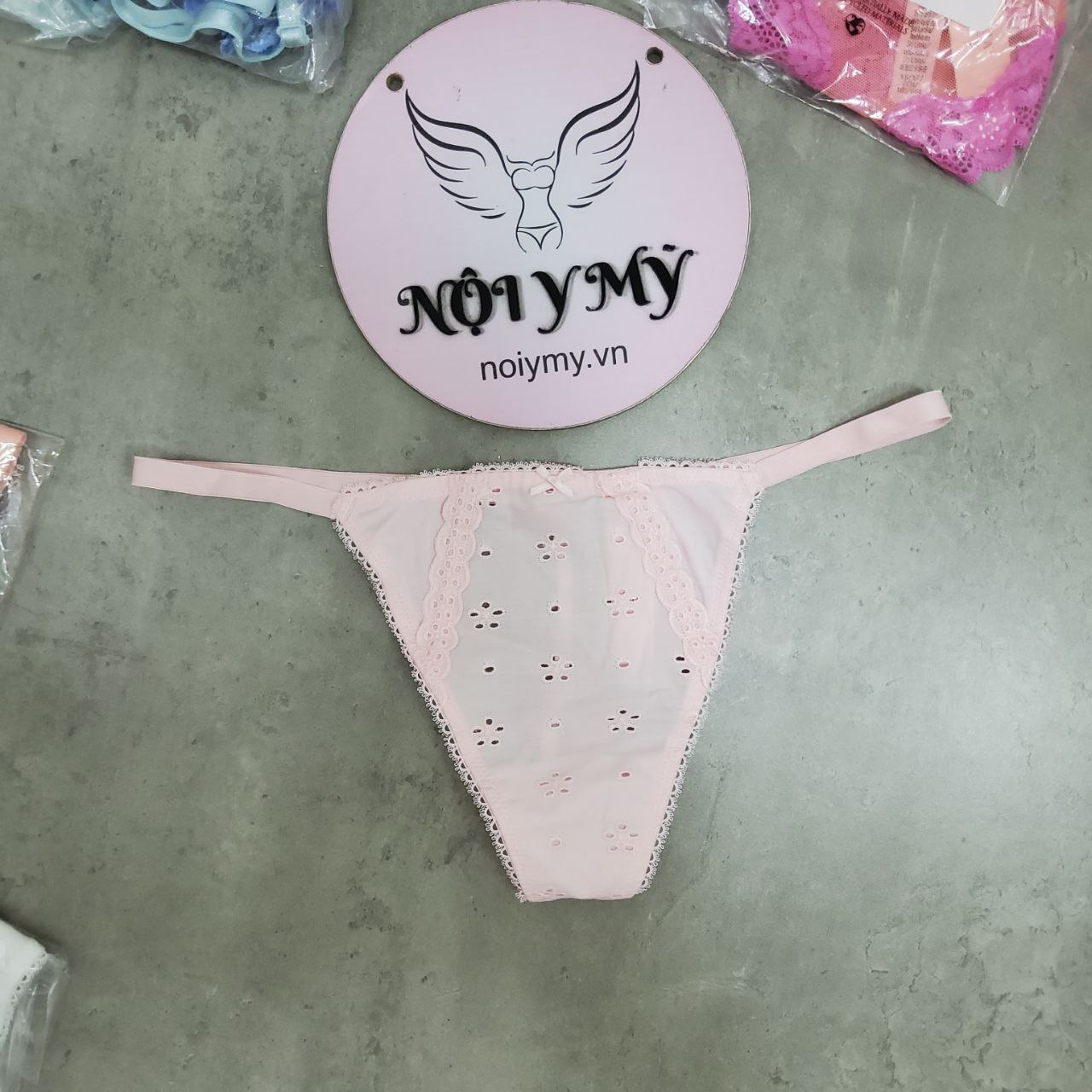 Quần lót Victoria Secret lọt khe dây vải xô màu hồng nhạt 426154qas