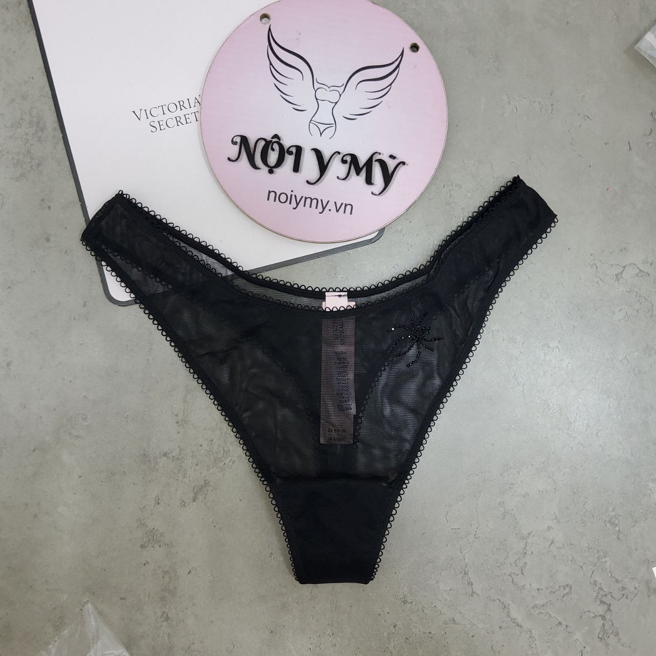 Quần lót Victoria Secret lọt khe lưng cao ren lưới đính đá màu đen 418798qc5