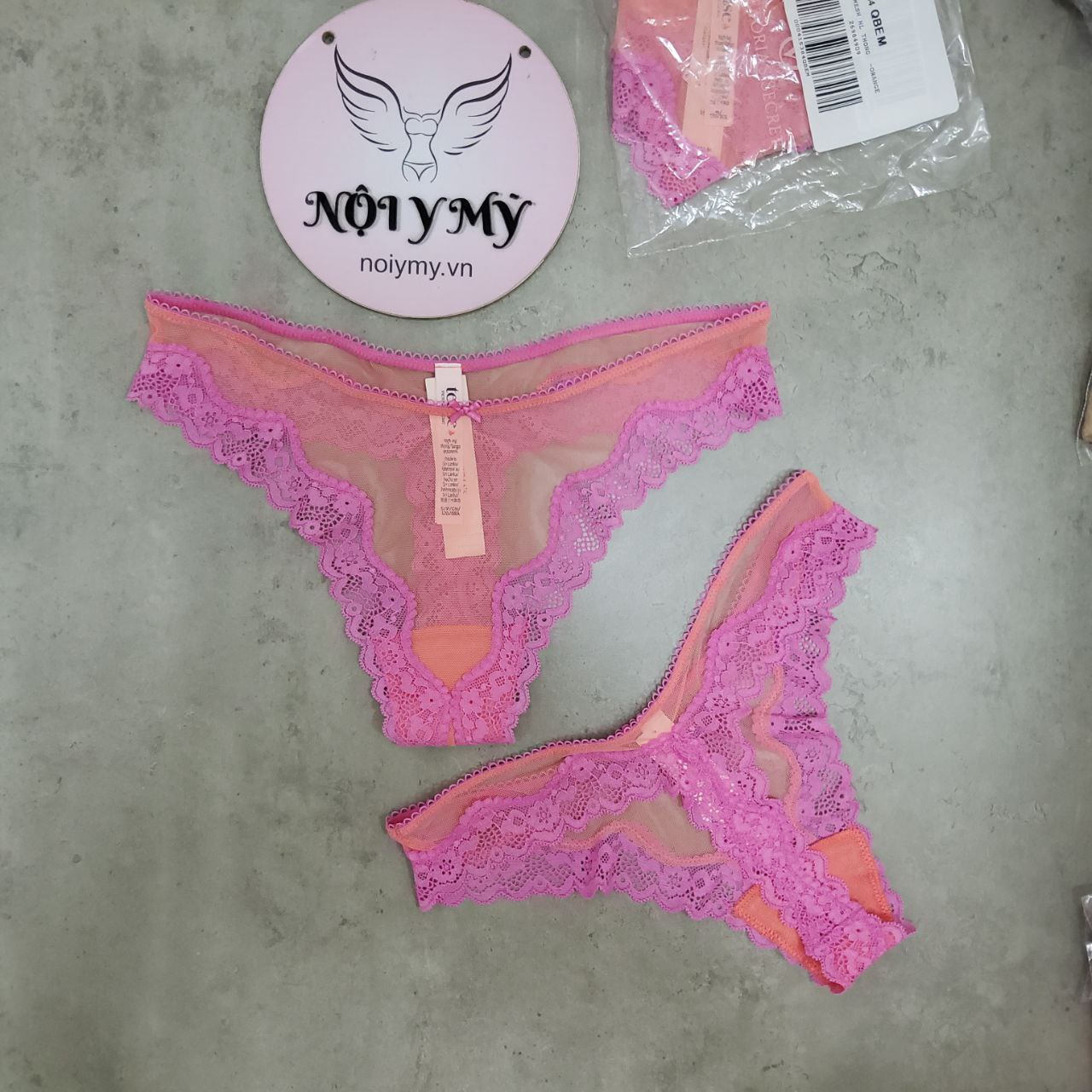 Quần lót Victoria Secret lọt khe ren lưới màu cam viền hồng 415384qbe