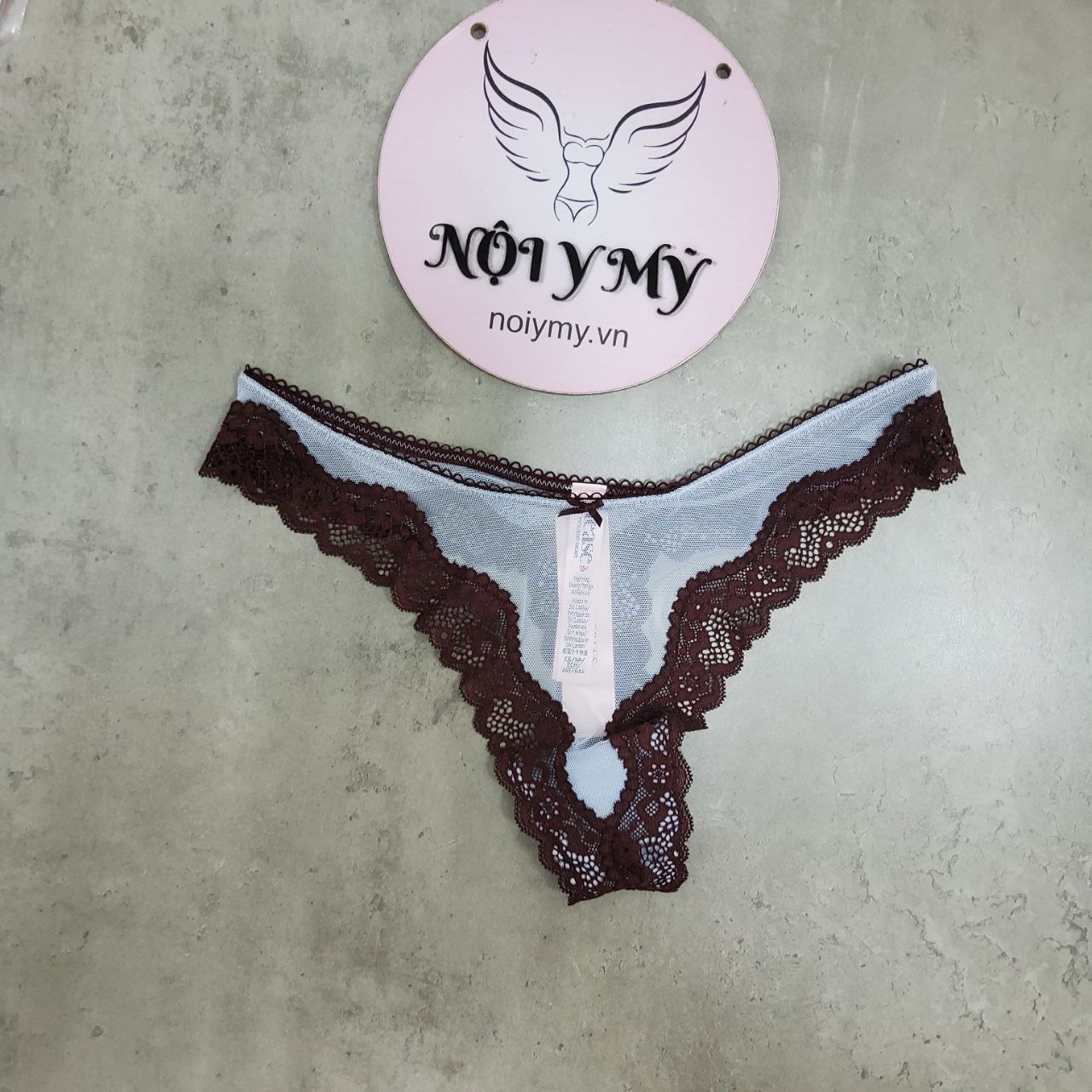 Quần lót Victoria Secret lọt khe ren lưới màu xanh biển viền nâu 415384qns