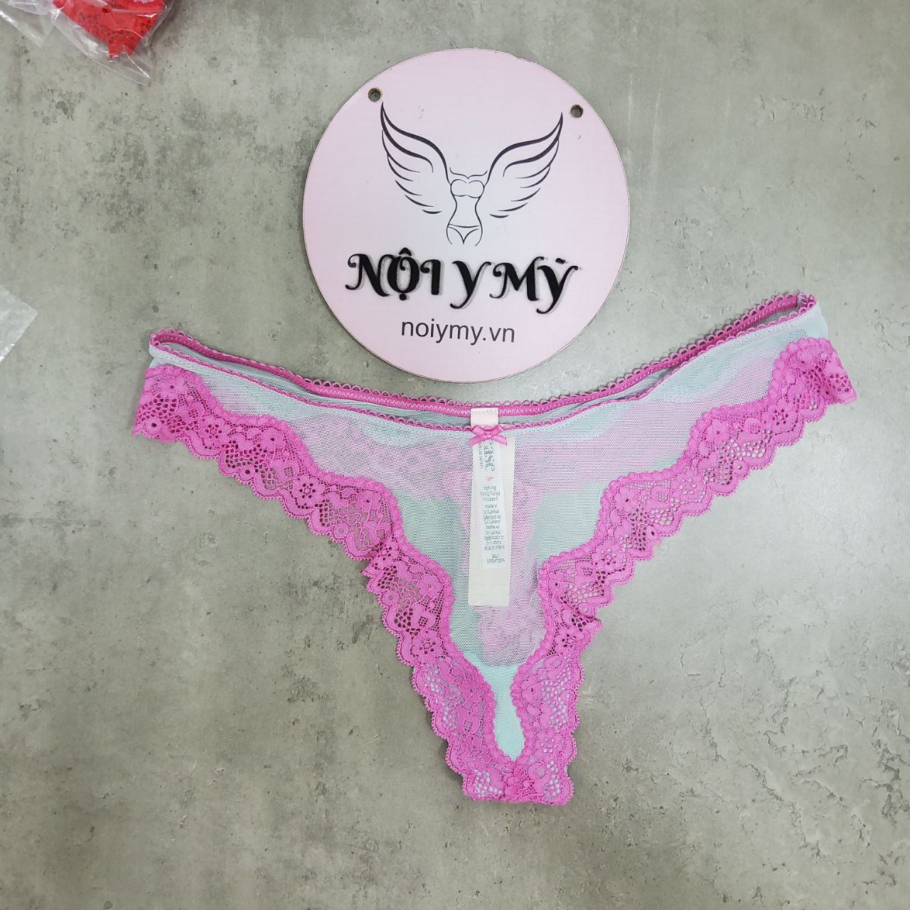 Quần lót Victoria Secret lọt khe ren lưới màu xanh ngọc viền hồng 415384qcz