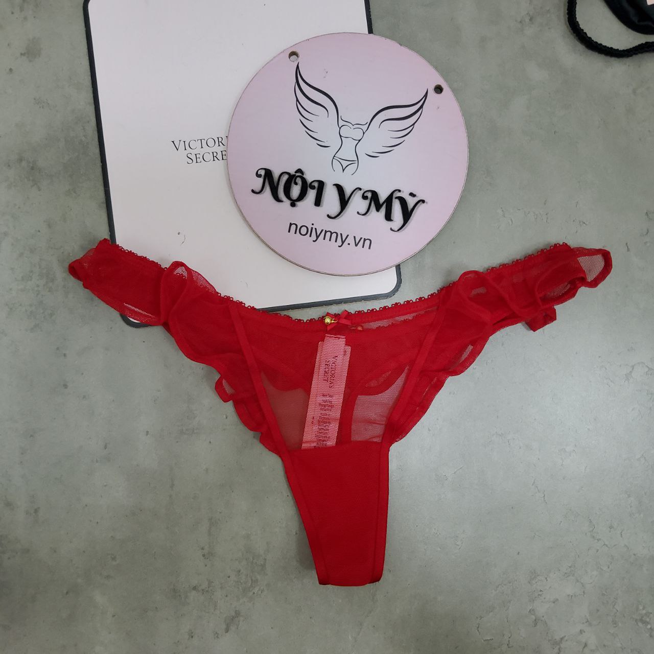Quần lót Victoria Secret lọt khe ren lưới viền bèo phối chuông màu đỏ 4315171qd4