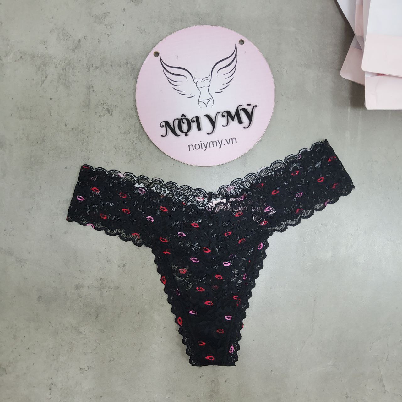 Quần lót Victoria Secret lọt khe ren màu đen hoạ tiết 419060qfq