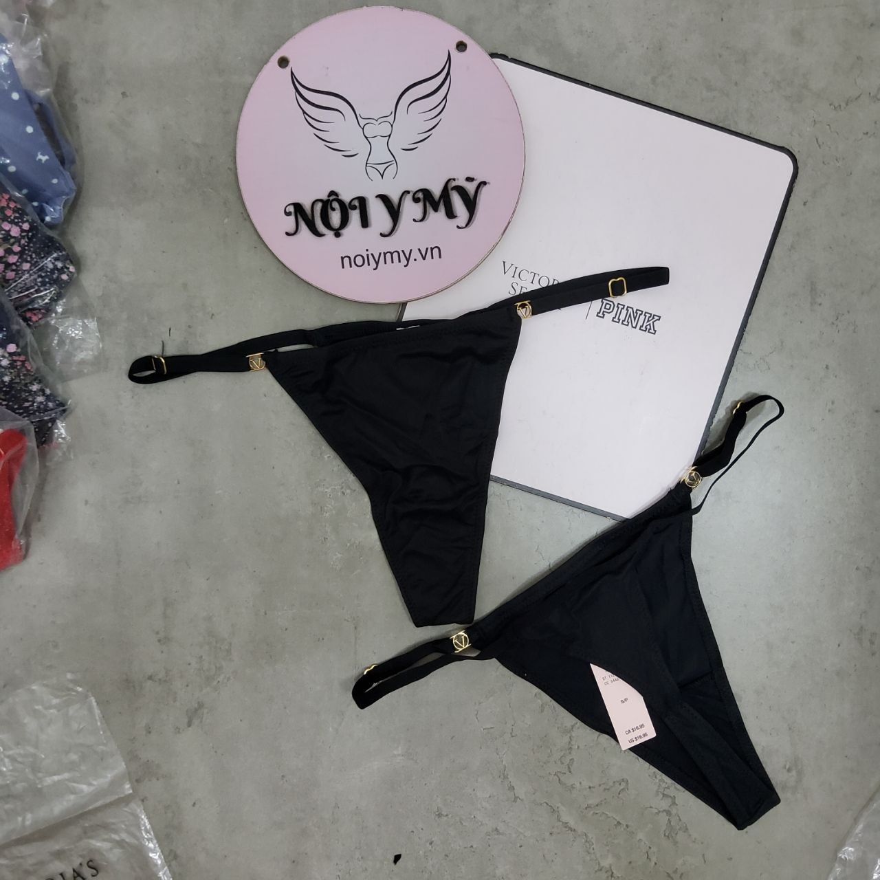 Quần lót Victoria Secret lọt khe thun lạnh dây điều chỉnh màu đen 532719qb4