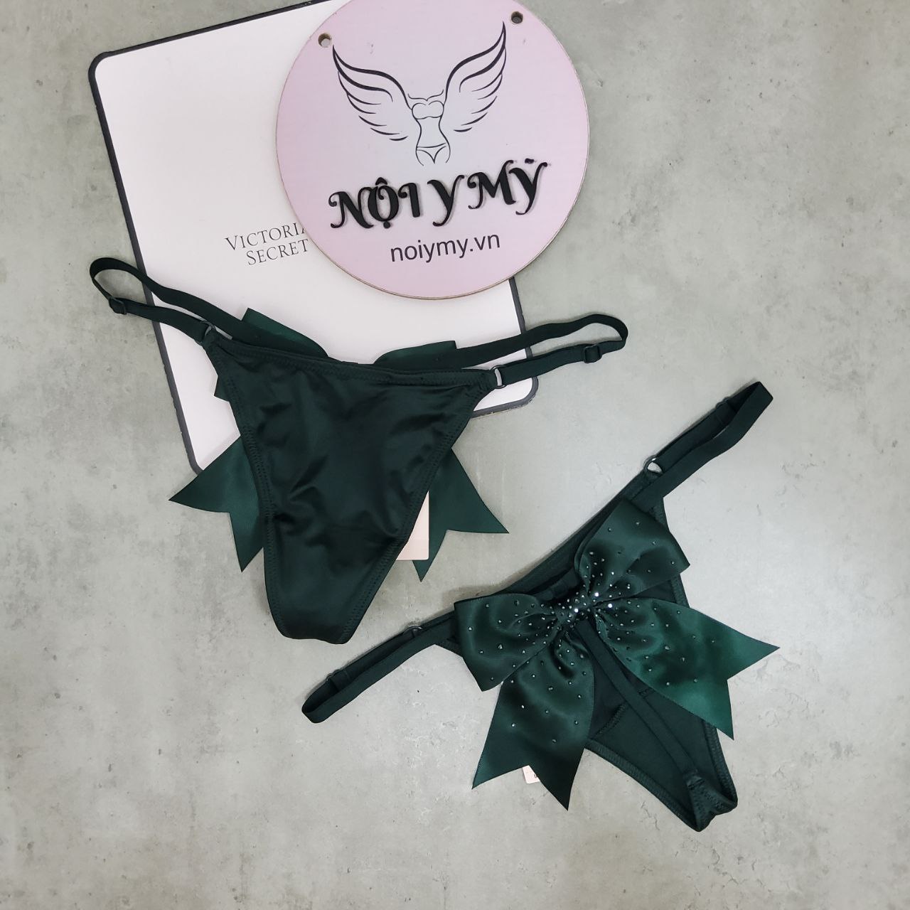 Quần lót Victoria Secret lọt khe thun lạnh dây điều chỉnh phía sau nơ đính đá màu xanh lá 431522qcz