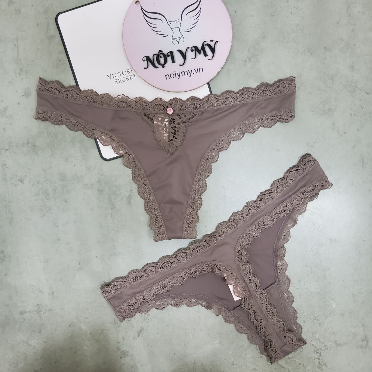 Quần lót Victoria Secret lọt khe thun lạnh phối ren màu nâu 417753qdu