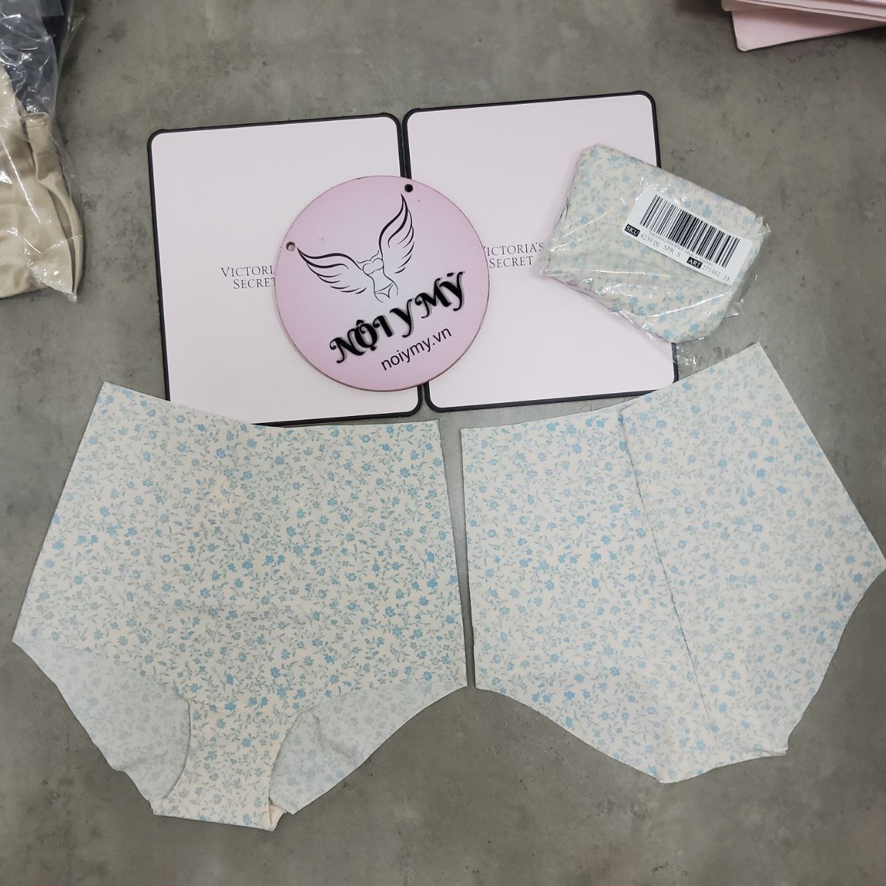 Quần lót Victoria Secret nguyên mông lưng cao thun lạnh không viền màu kem hoa 423906spr