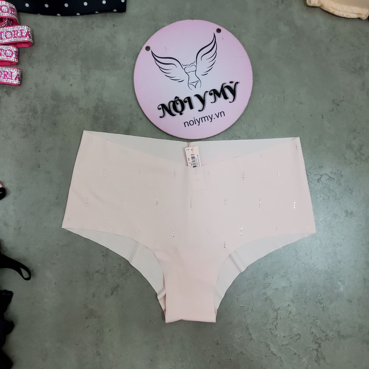 Quần lót Victoria Secret nửa mông thun lạnh không viền màu cam nhạt đính đá 27186471