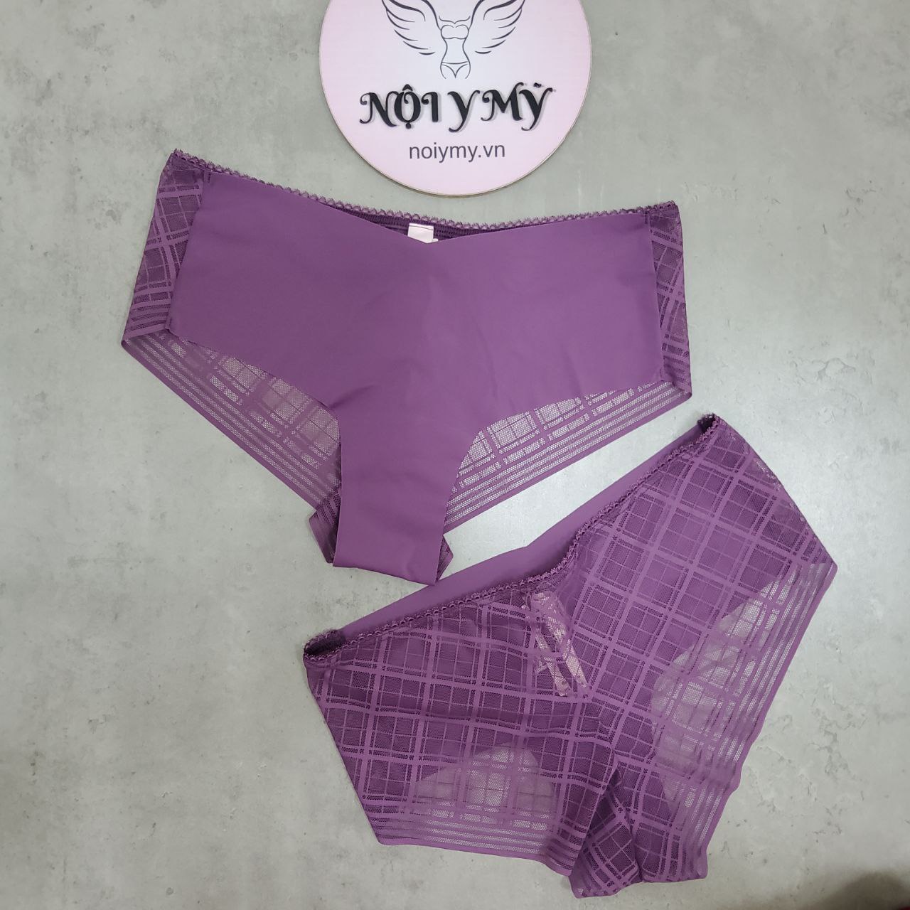 Quần lót Victoria Secret nửa mông thun lạnh không viền phía sau ren lưới màu tím 431682qcj