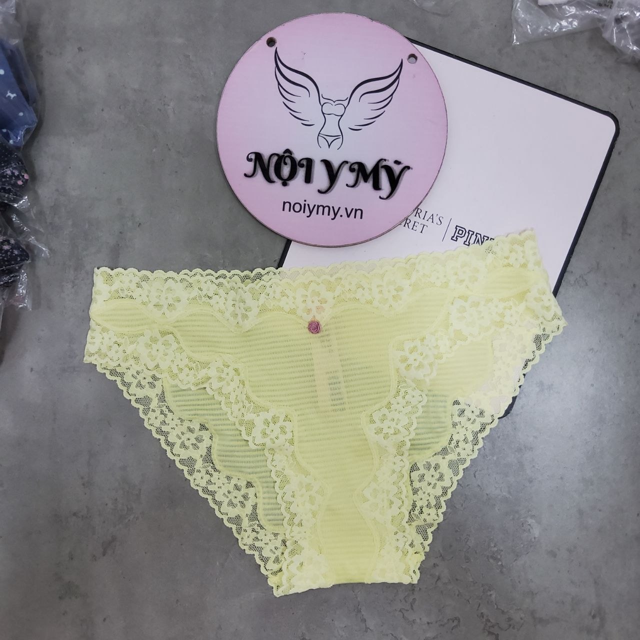 Quần lót Victoria’s Secret bikini thun cotton viền ren màu vàng 428644qac