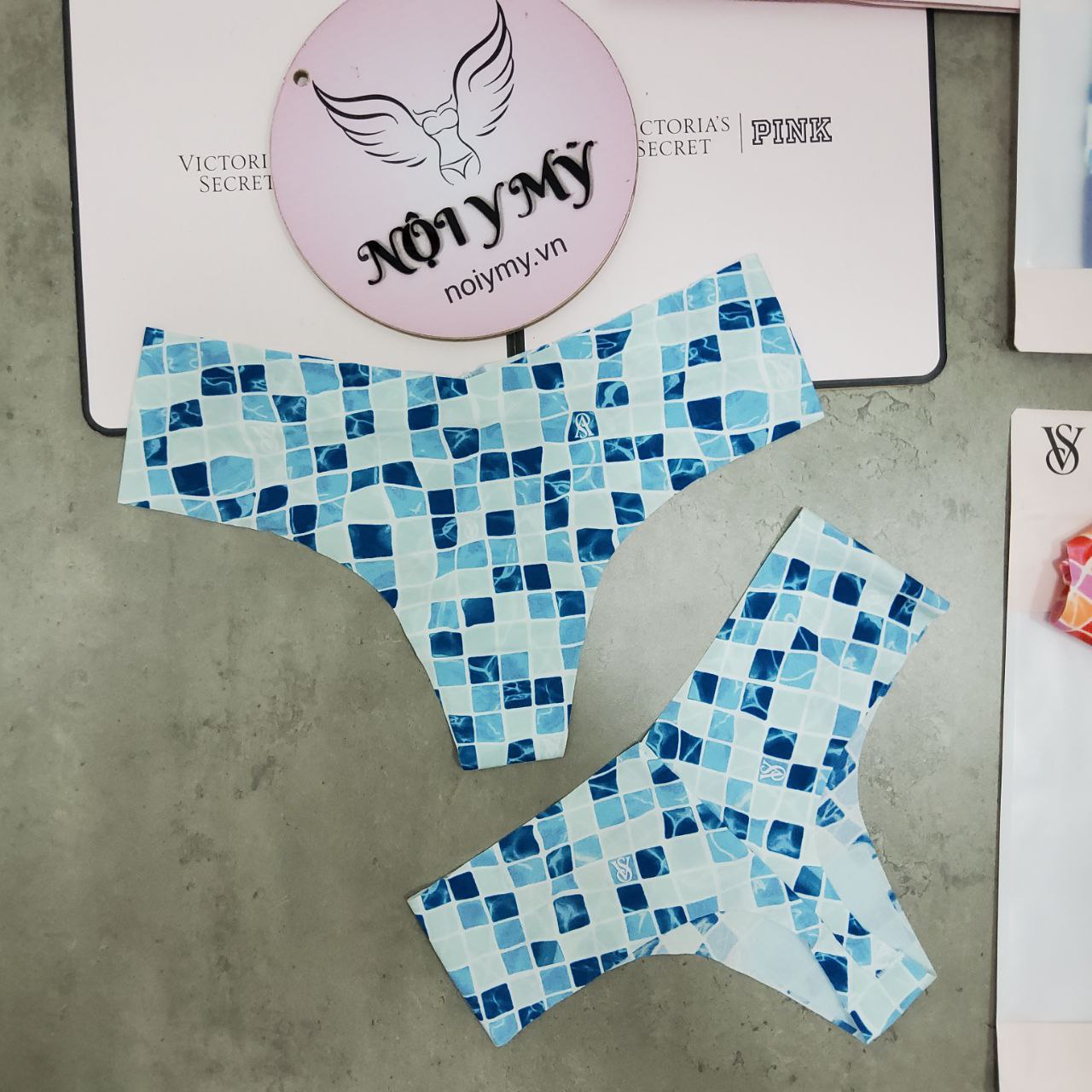 Quần lót Victoria’s Secret lọt khe thun lạnh không viền màu xanh biển caro 424626