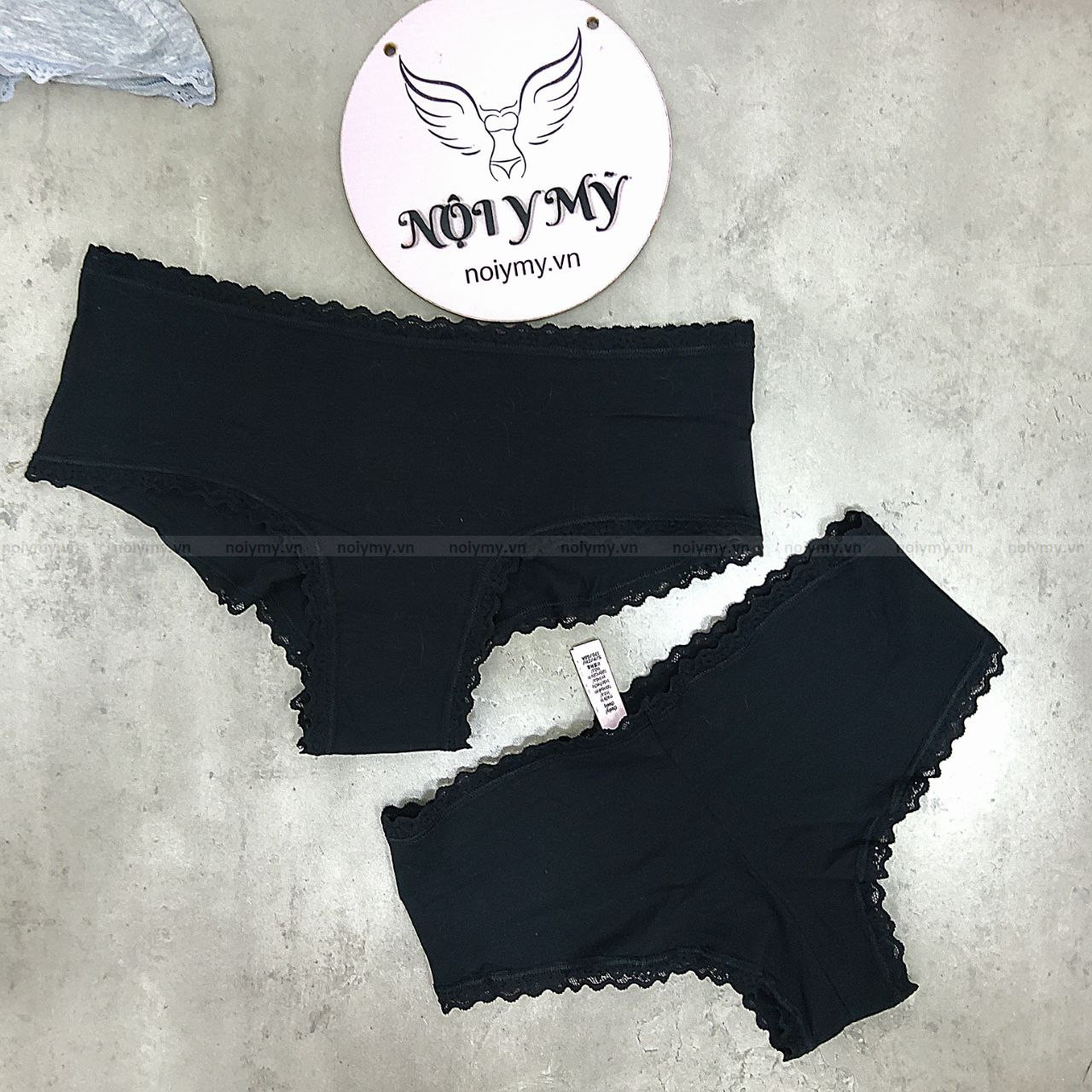 Quần lót Victoria’s Secret nửa mông cotton viền ren màu đen 422682qb4