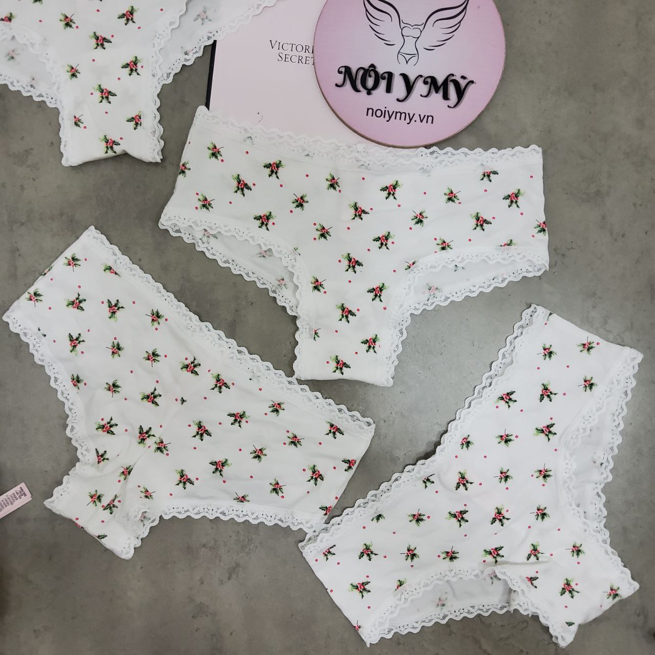 Quần lót Victoria’s Secret nửa mông cotton viền ren màu trắng hoạ tiết 27184360
