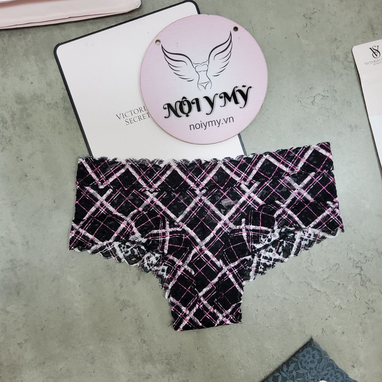 Quần lót Victoria’s Secret nửa mông ren màu đen caro 419058qe2
